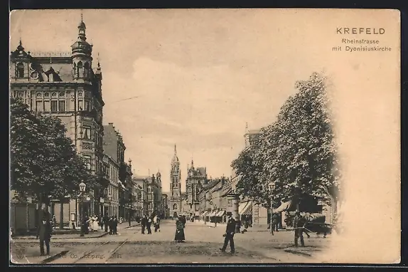 AK Krefeld, Rheinstrasse mit Dyonisiuskirche