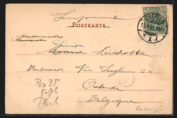 gelaufen 1901, Eckknicke re. oben u. li., guter Zustand