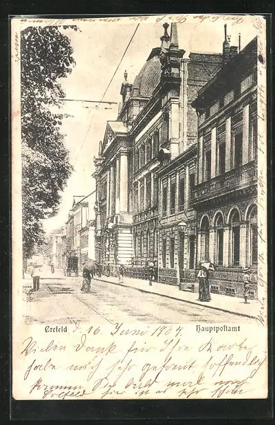 AK Krefeld, Strassenpartie mit Hauptpostamt