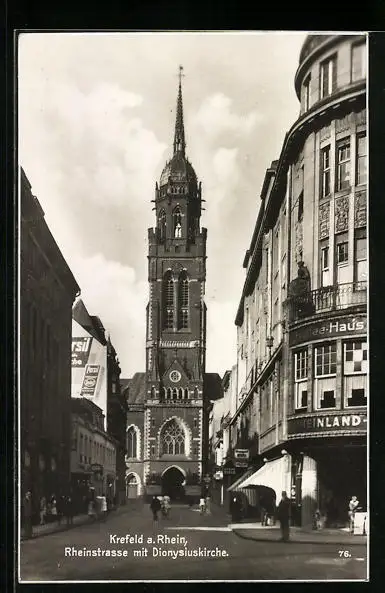 AK Krefeld a. Rhein, Rheinstrasse mit Cafe Rheinland und Dionysiuskirche