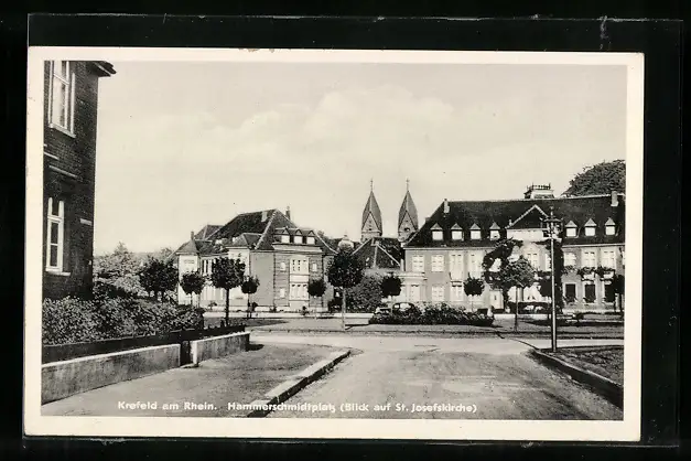 AK Krefeld am Rhein, Hammerschmidtplatz mit Blick auf St. Josefskirche