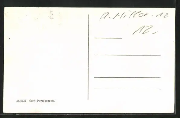 Personenbezogene Daten auf der Rückseite der Karte wurden durch blauen Textmarker unkenntlich gemacht. Die blauen Stellen sind auf die Vorderseite durchgeweicht und wirken sich negativ auf das Postkartenfoto aus