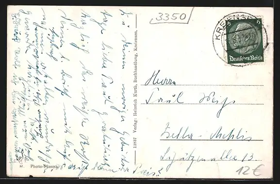 alte Ansichtskarte, gelaufen 1937, Einriss li. unten, kleiner Kantenschaden re. unten, guter Zustand