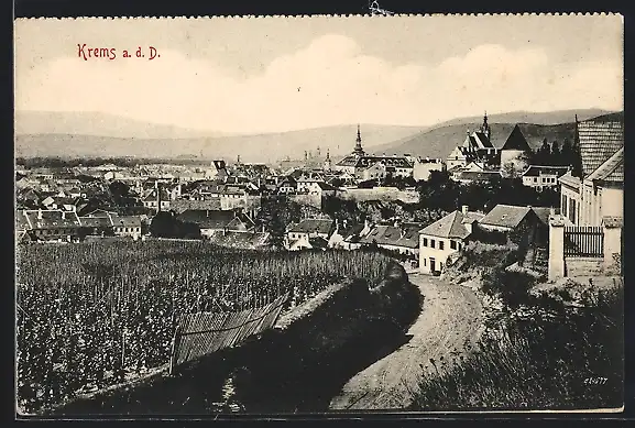 AK Krems /Donau, Panorama vom Ort an einem Feld