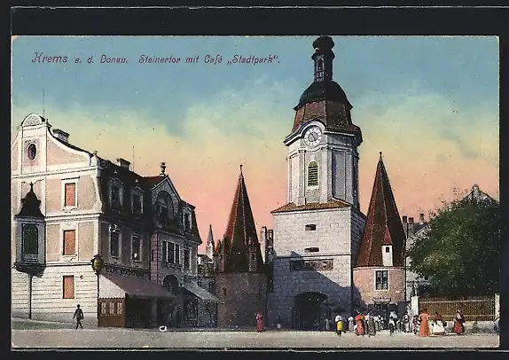 AK Krems a. d. Donau, Steinertor mit Café Stadtpark