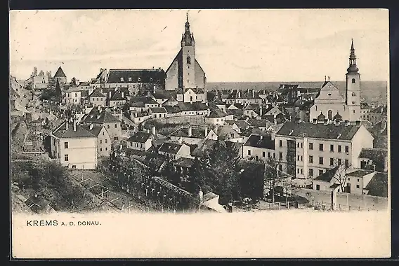 AK Krems a. d. Donau, Teilansicht mit Kirche