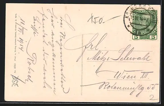 gelaufen 1914, Stempelspur, guter Zustand