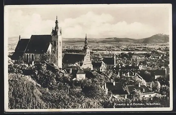 AK Krems a. d. Donau, Teilansicht mit Kirche