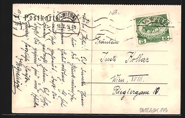 gelaufen 1916, Eckknick li. unten, Stempelspur, guter Zustand