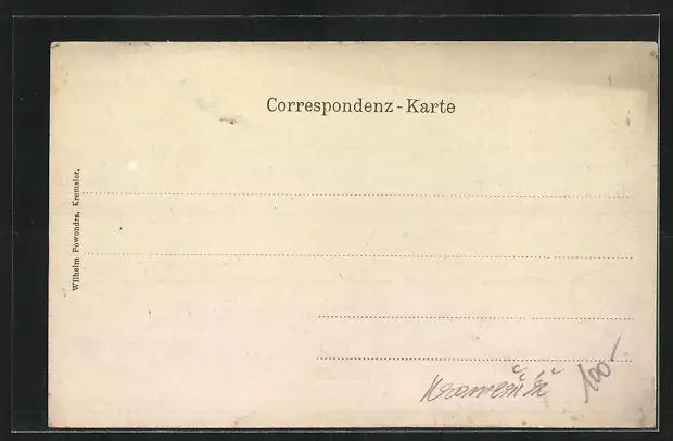 Personenbezogene Daten auf der Rückseite der Karte wurden durch blauen Textmarker unkenntlich gemacht. Die blauen Stellen sind auf die Vorderseite durchgeweicht und wirken sich negativ auf das Postkartenfoto aus