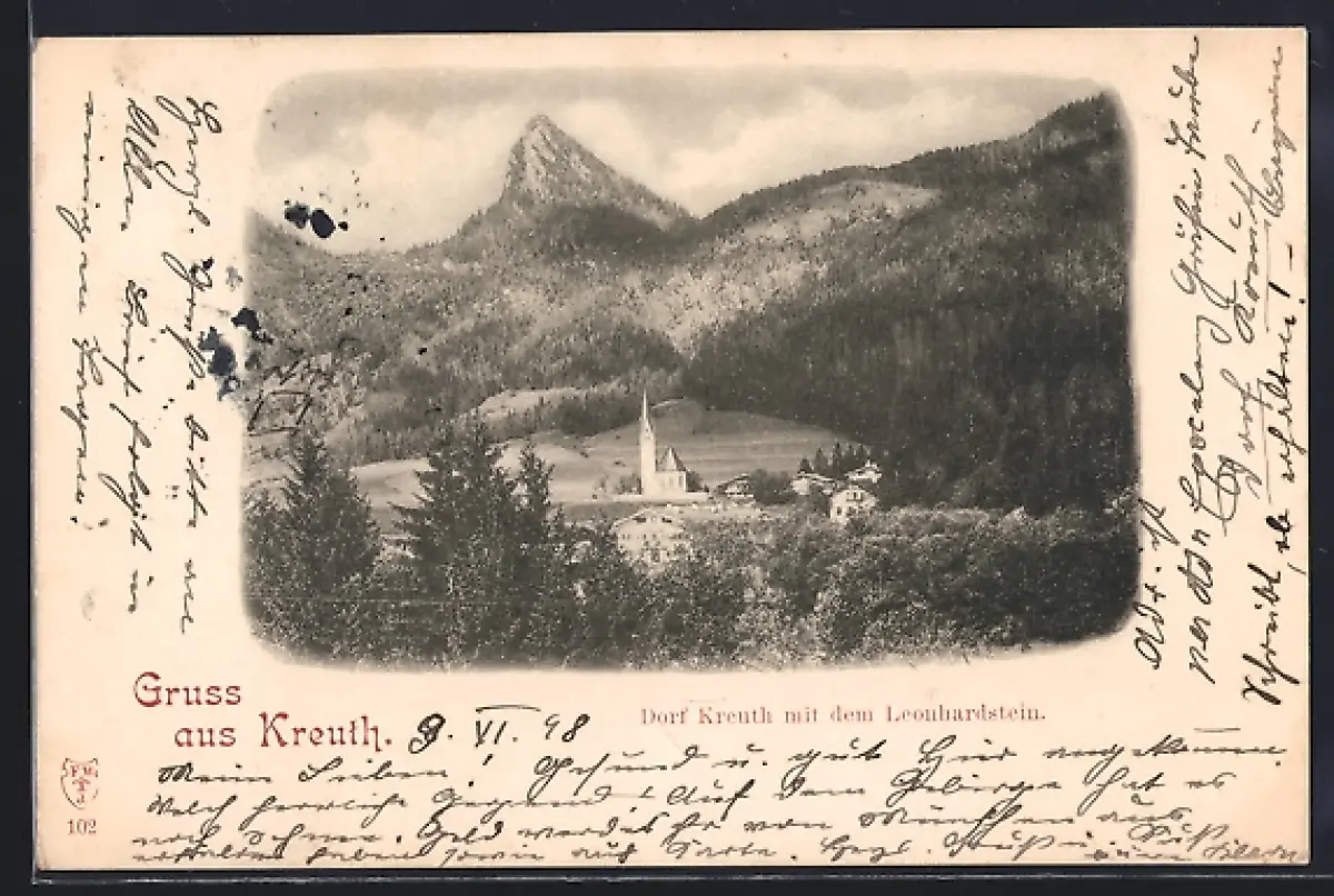 AK Kreuth, Ortsansicht mit dem Leonhardstein