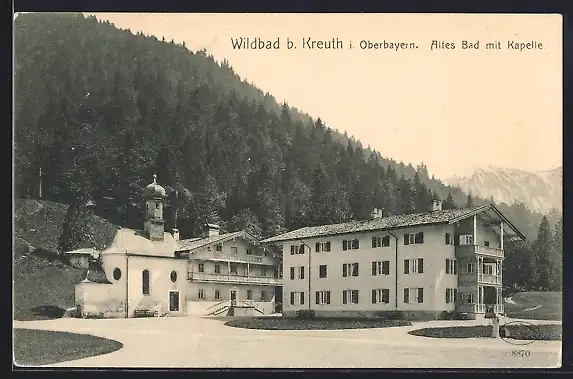 AK Kreuth, Wildbad, Altes Bad mit Kapelle