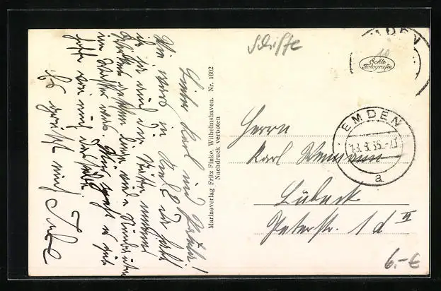 alte Ansichtskarte, gelaufen 1935, Briefmarke entfernt, guter Zustand