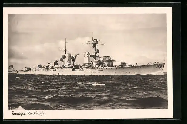 AK Kreuzer Karlsruhe der Kriegsmarine in voller Fahrt