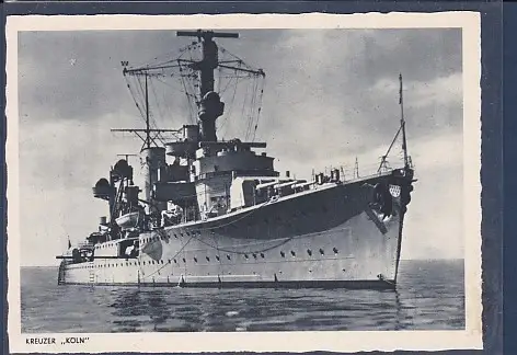 AK Kreuzer Köln Geschwindigkeit 32 Seemeilen Länge 169 m Breite 15,2 m Tiefgang 5,4 m Wasserverdrängung 6000 t, nicht gelaufen von ca. 1940