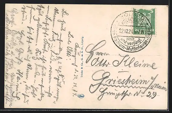 alte Ansichtskarte, gelaufen 1924, guter Zustand