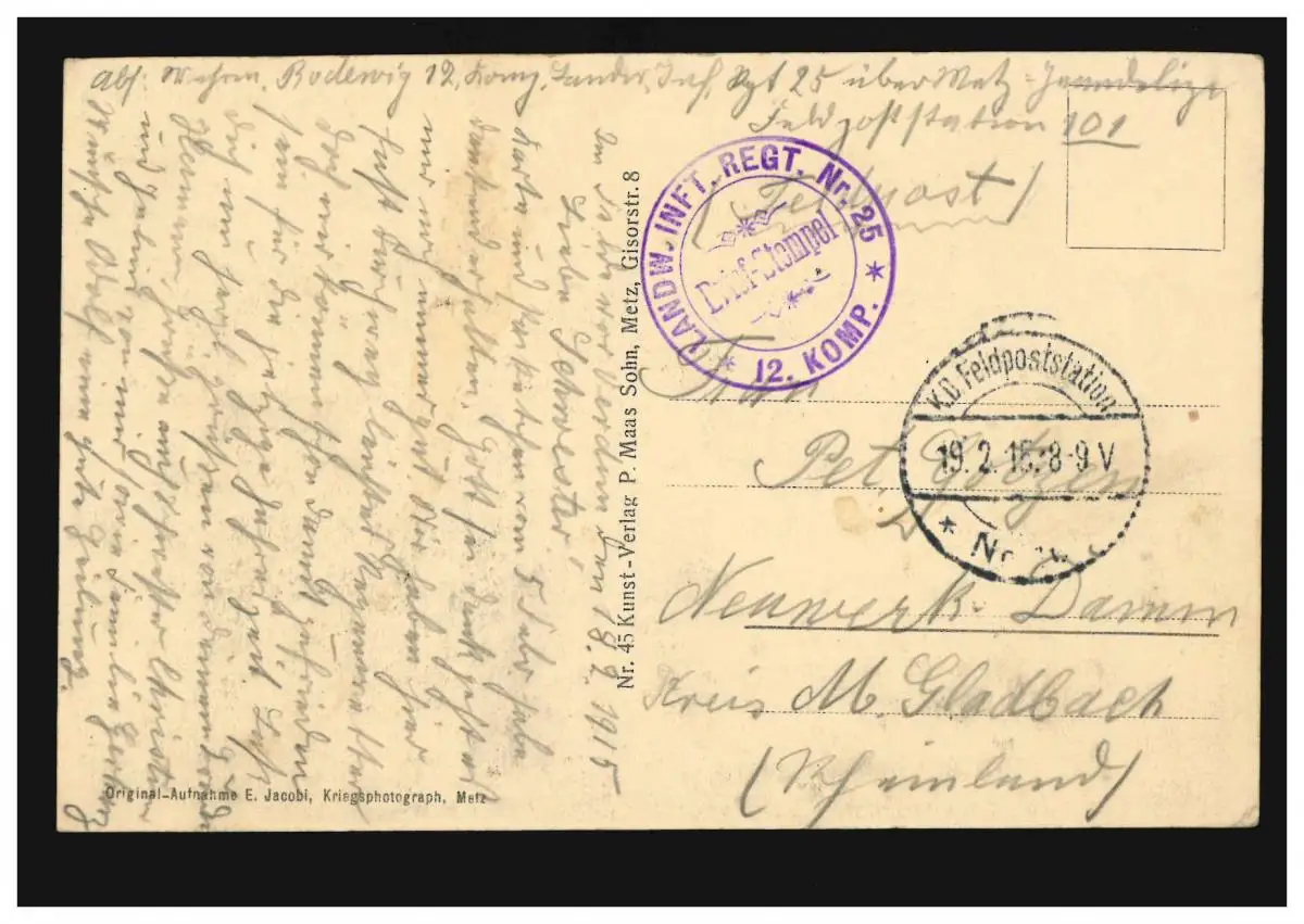 AK Krieg Schlachtfeld Buzy zwischen Conflans und Verdun, Feldpost 19.2.1915