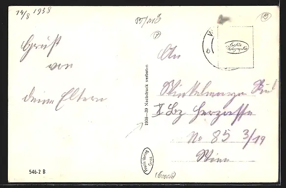 alte Ansichtskarte, gelaufen 1938, Briefmarke entfernt, guter Zustand