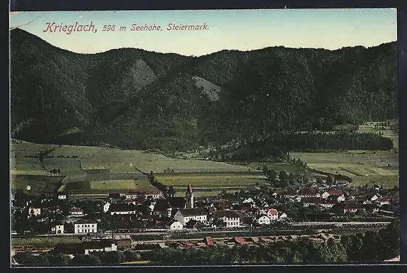 AK Krieglach /Steiermark, Teilansicht mit Kirche