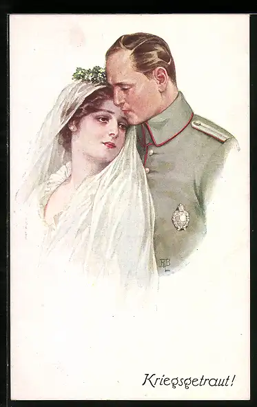 AK Kriegsgetraut!, Soldat in Uniform mit Abzeichen