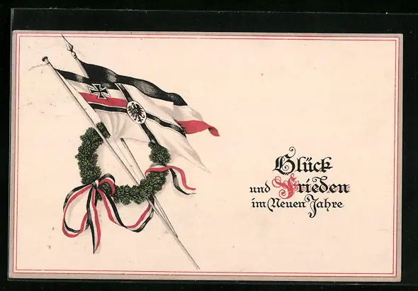 AK Kriegsneujahr, Reichsfahne mit Kranz