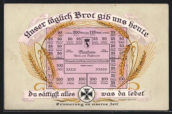 AK Kriegsnot, Brotkarte mit Ähren