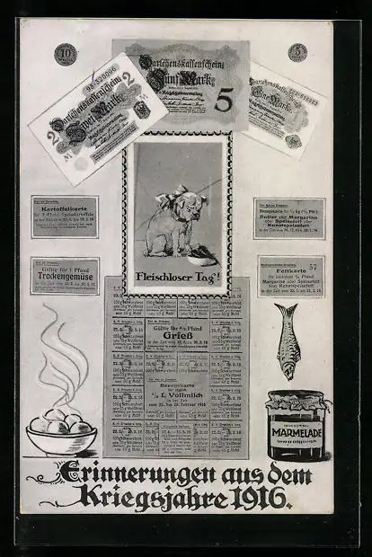 AK Kriegsnot, Darlehenskassenscheine, Fleischloser Tag, Hund