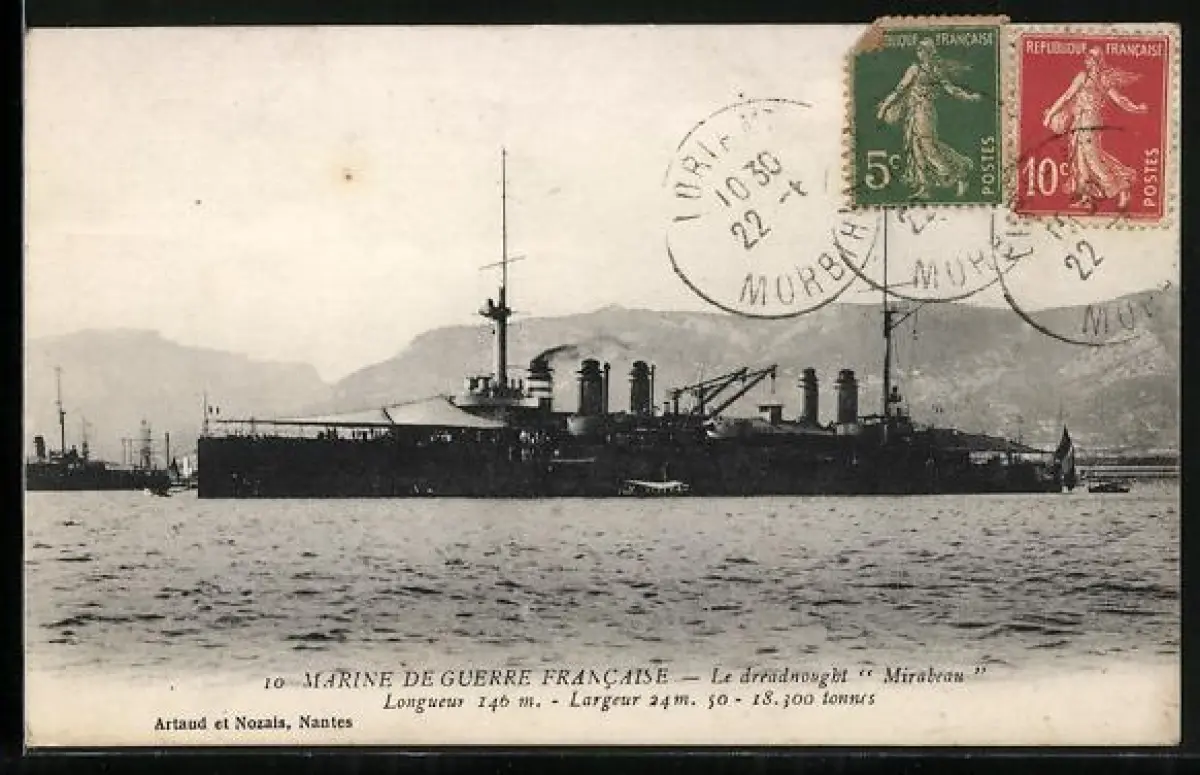 AK Kriegsschiff Dreadnought Mirabeau auf See