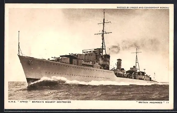 AK Kriegsschiff H.M.S. Afridi in voller Fahrt