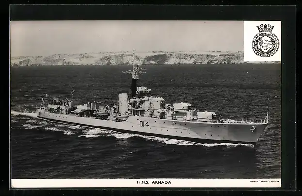 AK Kriegsschiff HMS Armada D14 nahe der Küste