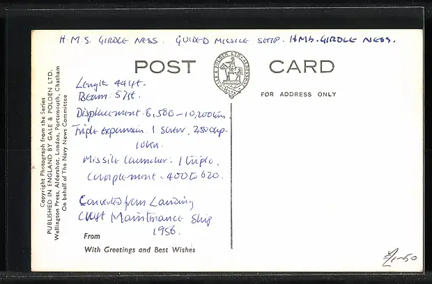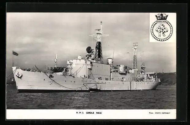 AK Kriegsschiff HMS Girdle Ness vor der Küste liegend
