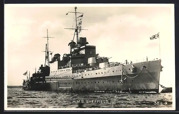 AK Kriegsschiff H.M.S. Sheffield liegt vor Anker
