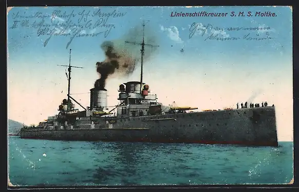 AK Kriegsschiff, Linienschiffkreuzer S.M.S. Moltke in Küstengebiet