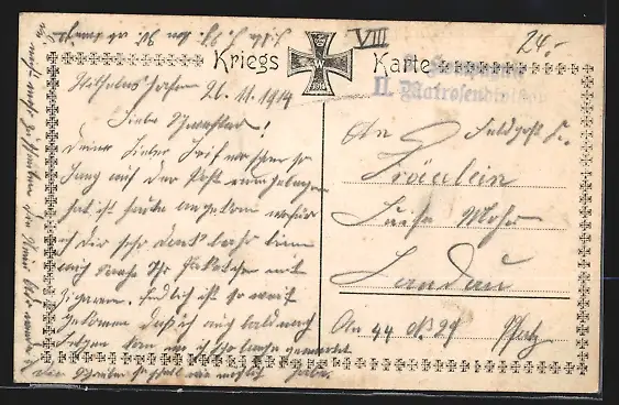 alte Ansichtskarte, gelaufen 1914, guter Zustand