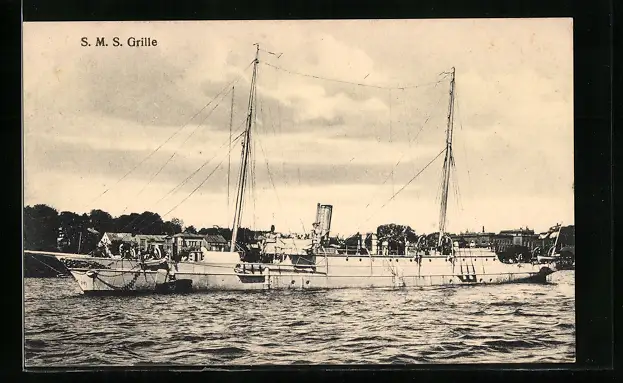 AK Kriegsschiff S. M. S. Grille im Hafen