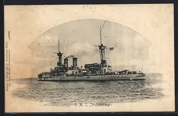 AK Kriegsschiff S. M. S. Weissenburg des Ostasiengeschwaders auf hoher See