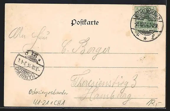 alte Ansichtskarte, gelaufen 1904, guter Zustand