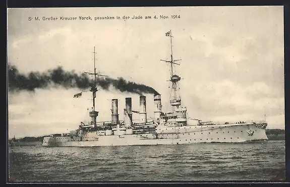 AK Kriegsschiff SM Grosser Kreuzer Yorck unter Volldampf, Steuerbordseite