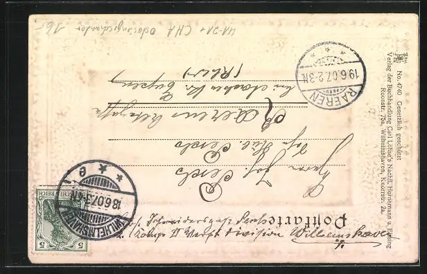 alte Ansichtskarte, gelaufen 1907, kleiner Einriss re. mittig, guter Zustand