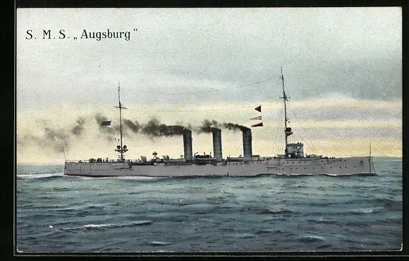 AK Kriegsschiff S.M.S. Augsburg auf See