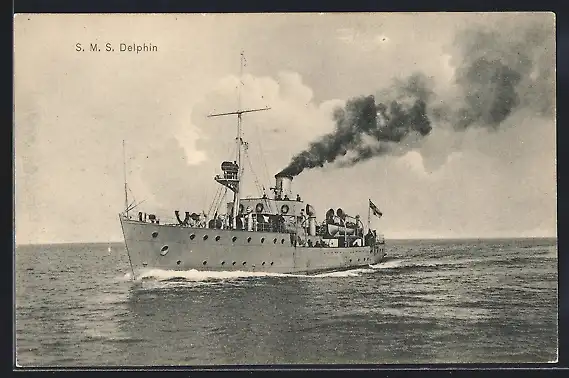 AK Kriegsschiff SMS Delphin unter Volldampf auf hoher See