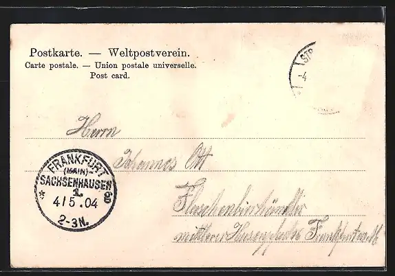 alte Ansichtskarte, gelaufen 1904, Briefmarke entfernt, guter Zustand