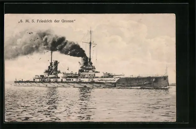 AK Kriegsschiff SMS Friedrich der Grosse Volldampf gebend