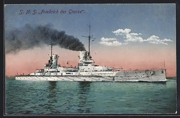 AK Kriegsschiff SMS Friedrich der Grosse unter Volldampf