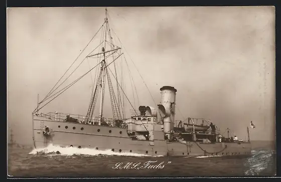 AK Kriegsschiff S.M.S. Fuchs in voller Fahrt