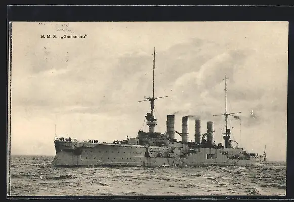 AK Kriegsschiff SMS Gneisenau vom Ostasiengeschwader auf See
