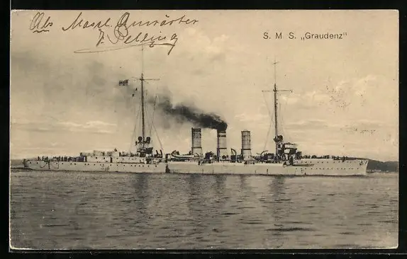 AK Kriegsschiff SMS Graudenz in Fahrt