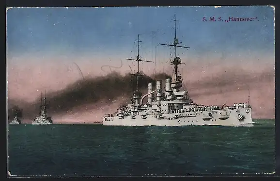 AK Kriegsschiff SMS Hannover im Konvoi