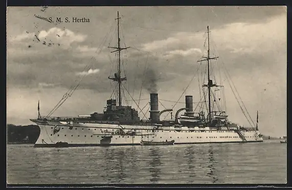 AK Kriegsschiff SMS Hertha des Ostasiengeschwaders liegt vor Anker