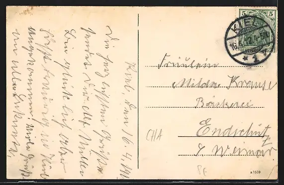 alte Ansichtskarte, gelaufen 1912, Stempelspur, Eckknick li. unten, guter Zustand